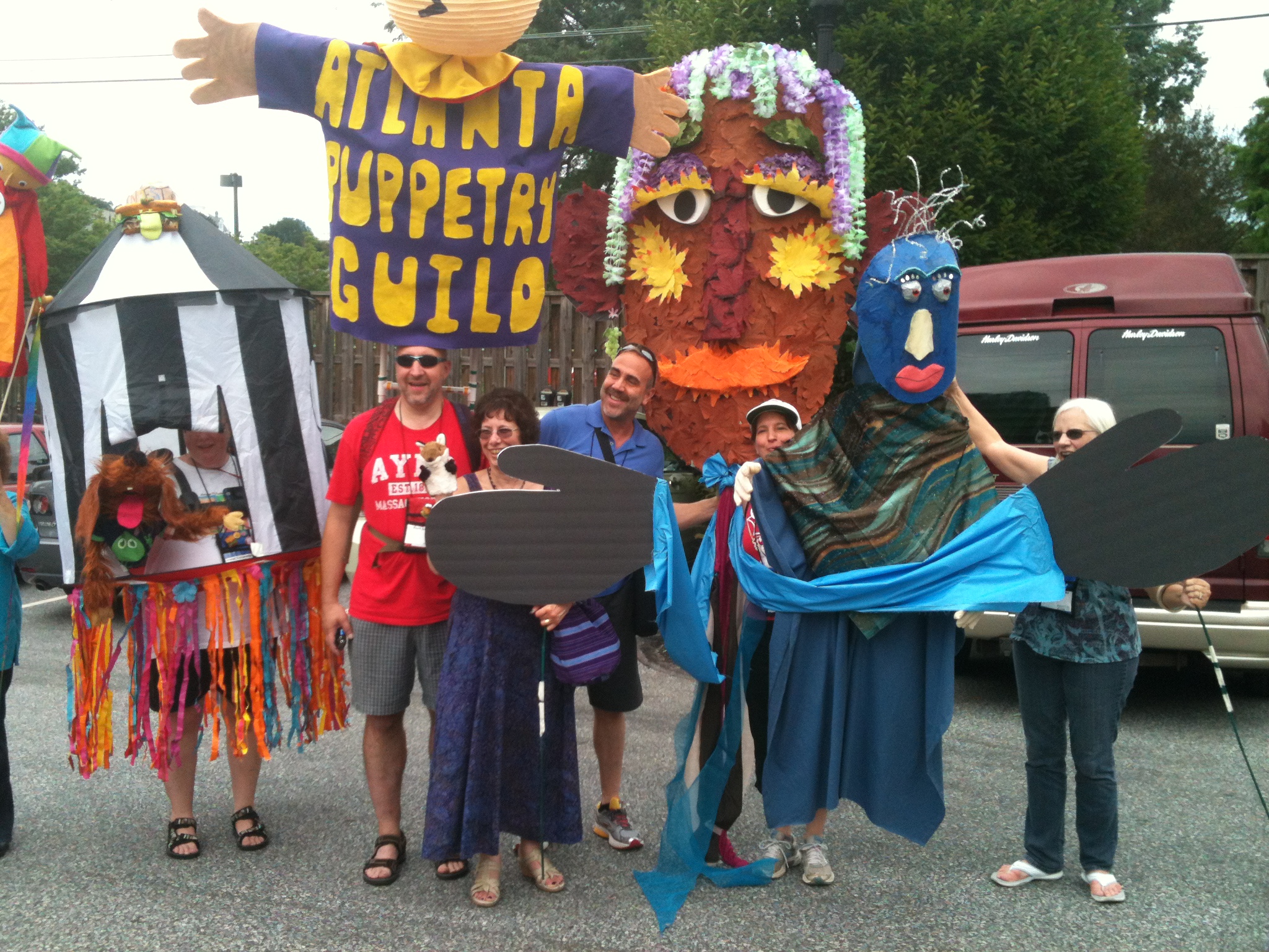 The Atlanta Puppetry Guild was well represented in the parade! Piccadilly Puppets had the large blue-headed puppet on the right.